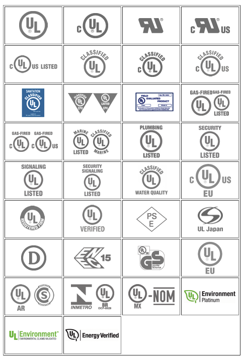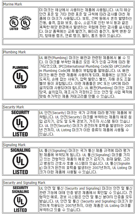 UL ¸¶Å©´Â ´ÙÀ½°ú °°ÀÌ ¸î °¡Áö ŸÀÔÀÌ ÀÖ½À´Ï´Ù. °¢°¢ÀÇ ¸¶Å©´Â ÀÇ¹Ì¿Í ÃëÁö¸¦ ´ã°í ÀÖ½À´Ï´Ù.