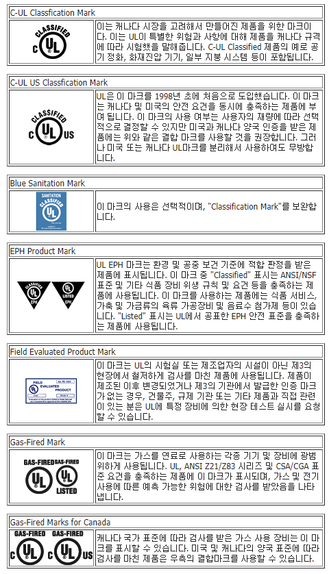 UL ¸¶Å©´Â ´ÙÀ½°ú °°ÀÌ ¸î °¡Áö ŸÀÔÀÌ ÀÖ½À´Ï´Ù. °¢°¢ÀÇ ¸¶Å©´Â ÀÇ¹Ì¿Í ÃëÁö¸¦ ´ã°í ÀÖ½À´Ï´Ù.